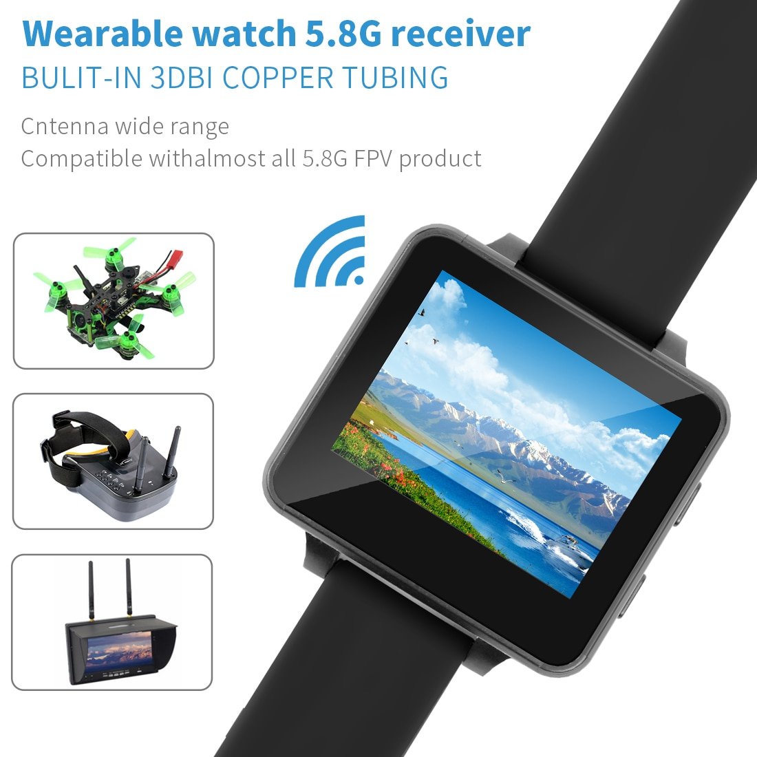· FPV Watch with 5.8Ghz 40 CH wireless receiver, antenna inside.